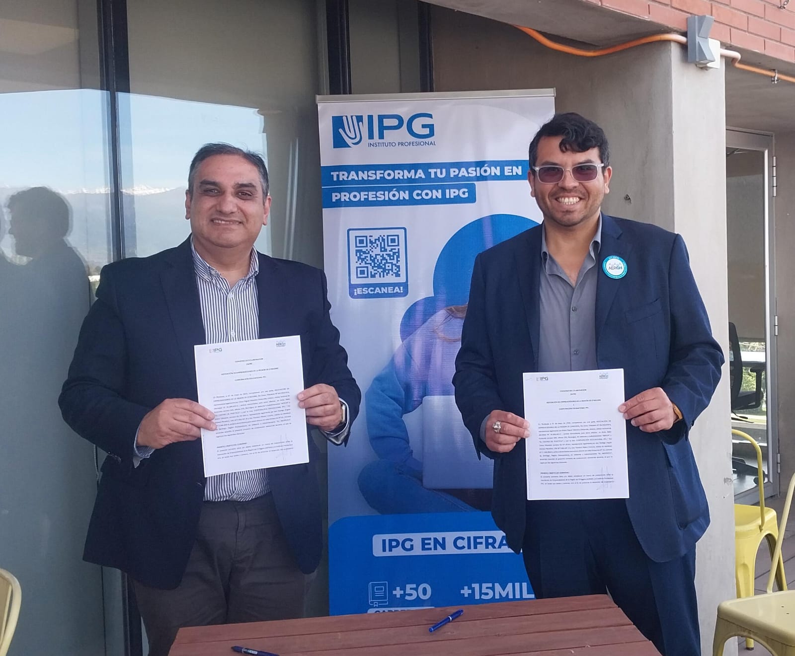 El Instituto Profesional IPG, a través de su Sede Online, firmó un convenio de colaboración con la Asociación de Emprendedores de la Región de O’Higgins (AEROH), en el marco de su política institucional de Vinculación con el Medio orientada a fortalecer redes territoriales y generar oportunidades de desarrollo para la comunidad emprendedora.